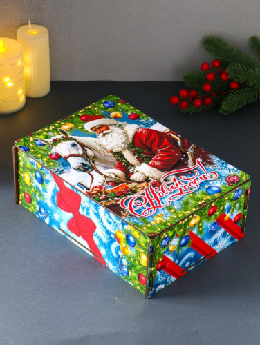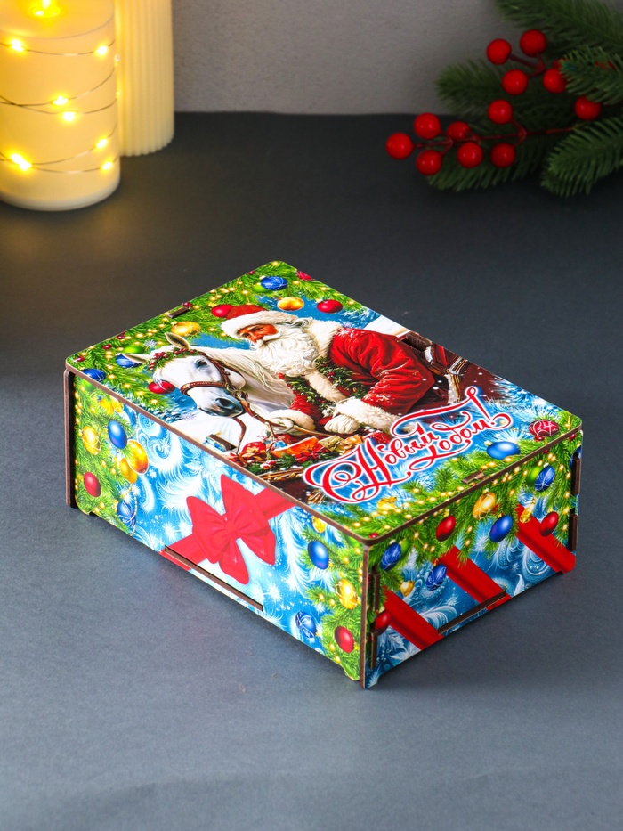 Новогодняя шкатулка подарочная «Дед Мороз и лошадь», для подарков, самосборная, 20×13.6×8 см