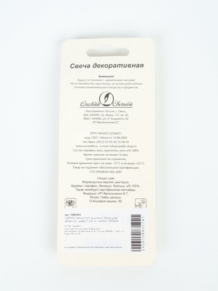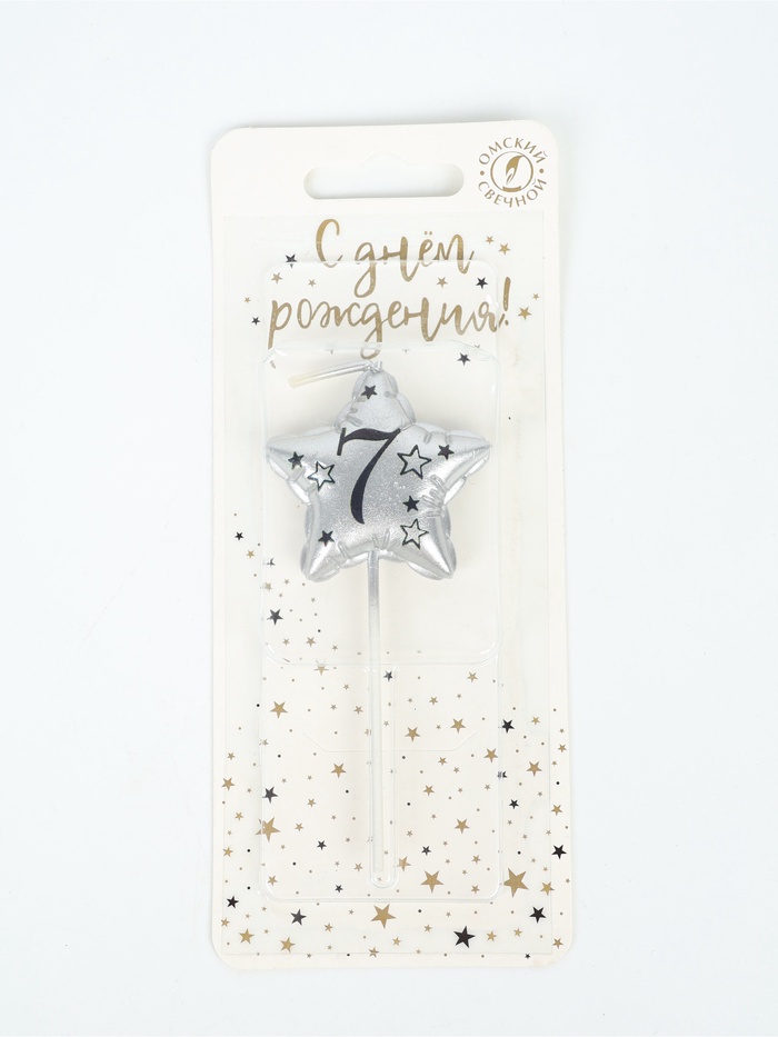 УЦЕНКА Свеча в торт на шпажке "Воздушная звездочка", цифра 7, 3,5 см, серебро