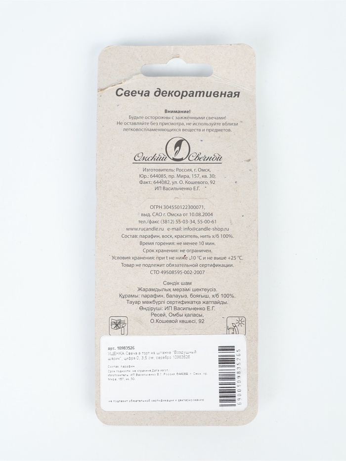 Высота свечи без шпажки, см: 3,5