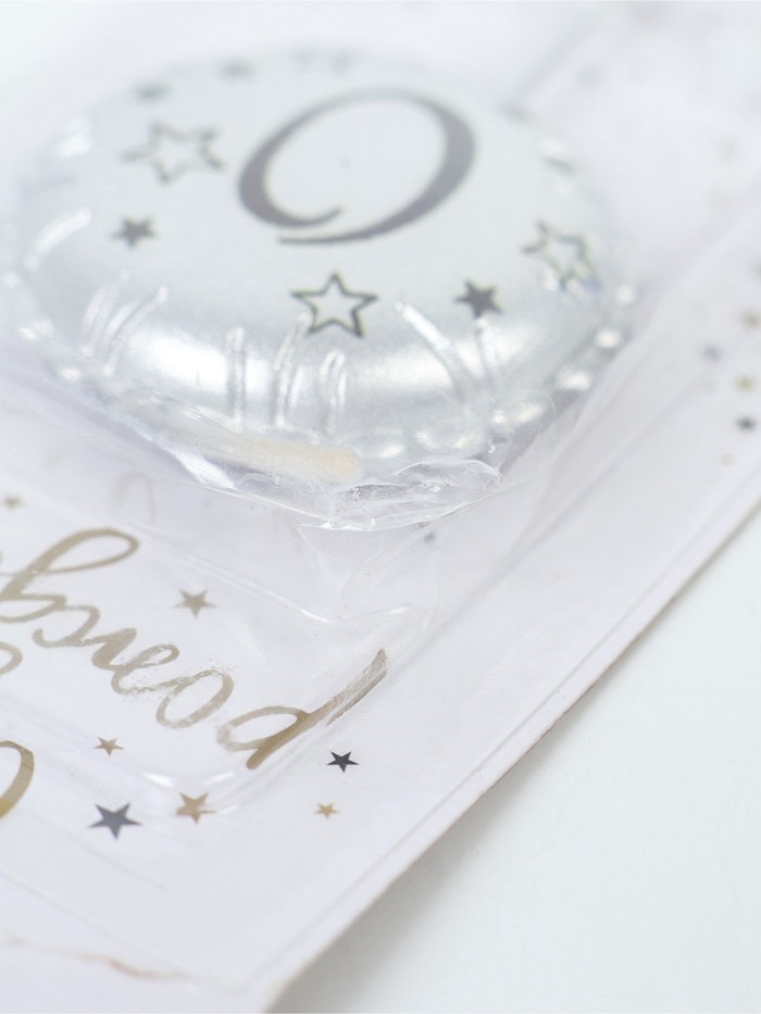 УЦЕНКА Свеча в торт на шпажке "Воздушный шарик", цифра 0, 3,5 см, серебро