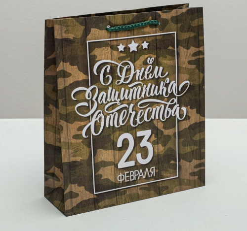 Пакет ламинированный вертикальный «С днём Защитника Отечества, 23 февраля», ML 23 × 27 × 11,5 см