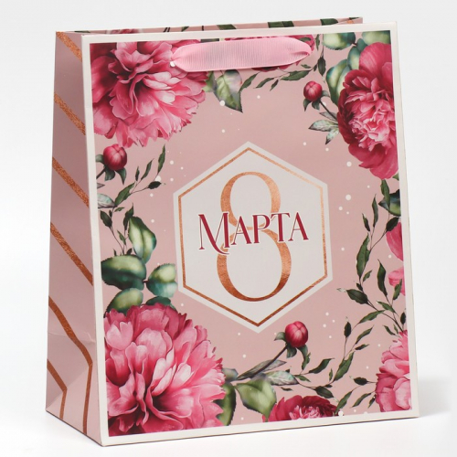 Пакет подарочный "С 8 марта крч", 24 х 10,5 х 32 см