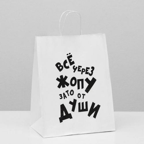 Пакет подарочный с приколами, крафт «От души», белый, 24 х 10,5 х 32 см