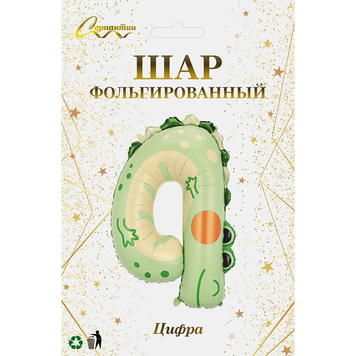 Шар фольгированный 40" (100 см) Цифра 4 "Весёлый зоопарк"