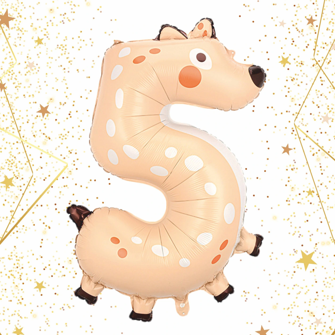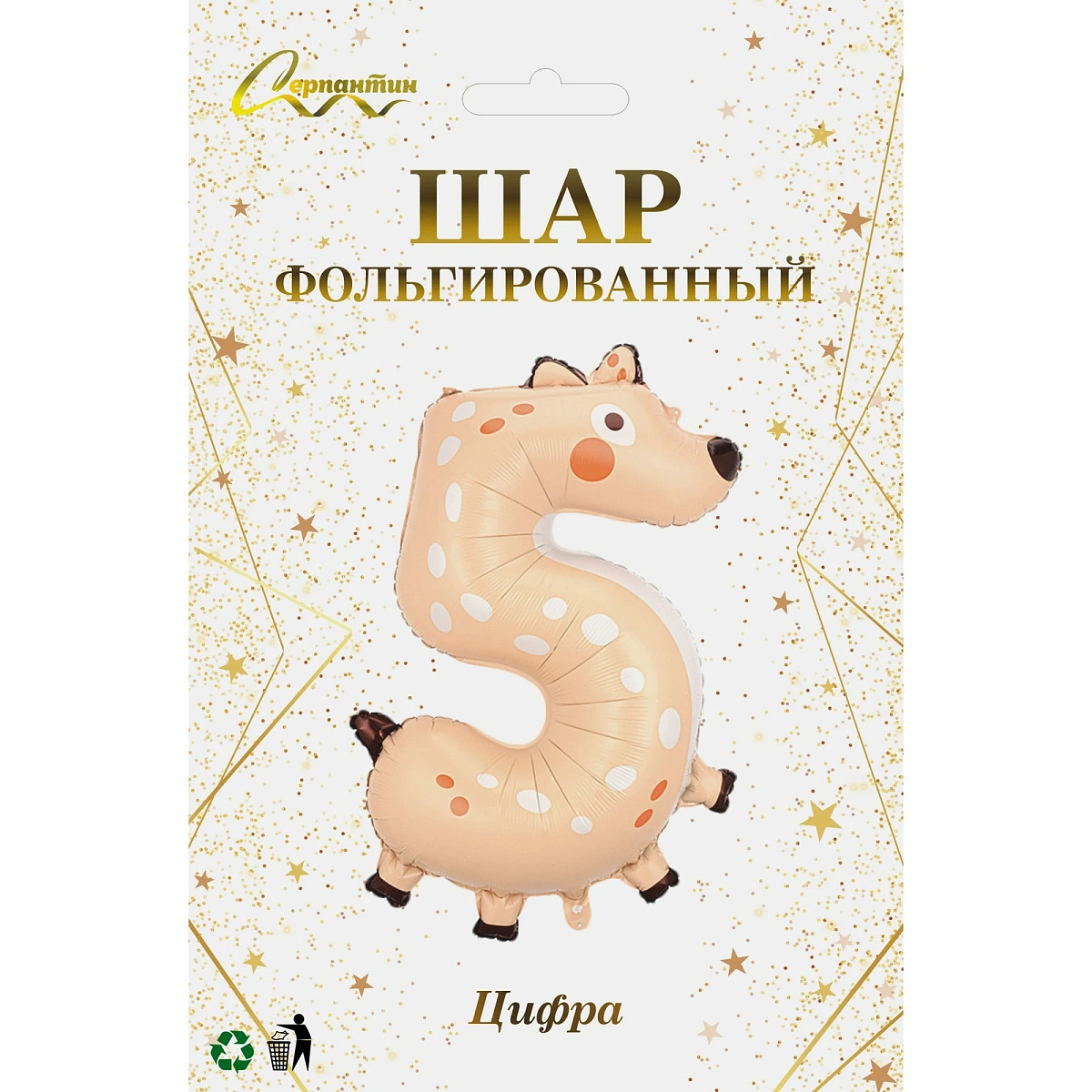 Шар фольгированный 40" (100 см) Цифра 5 "Весёлый зоопарк"