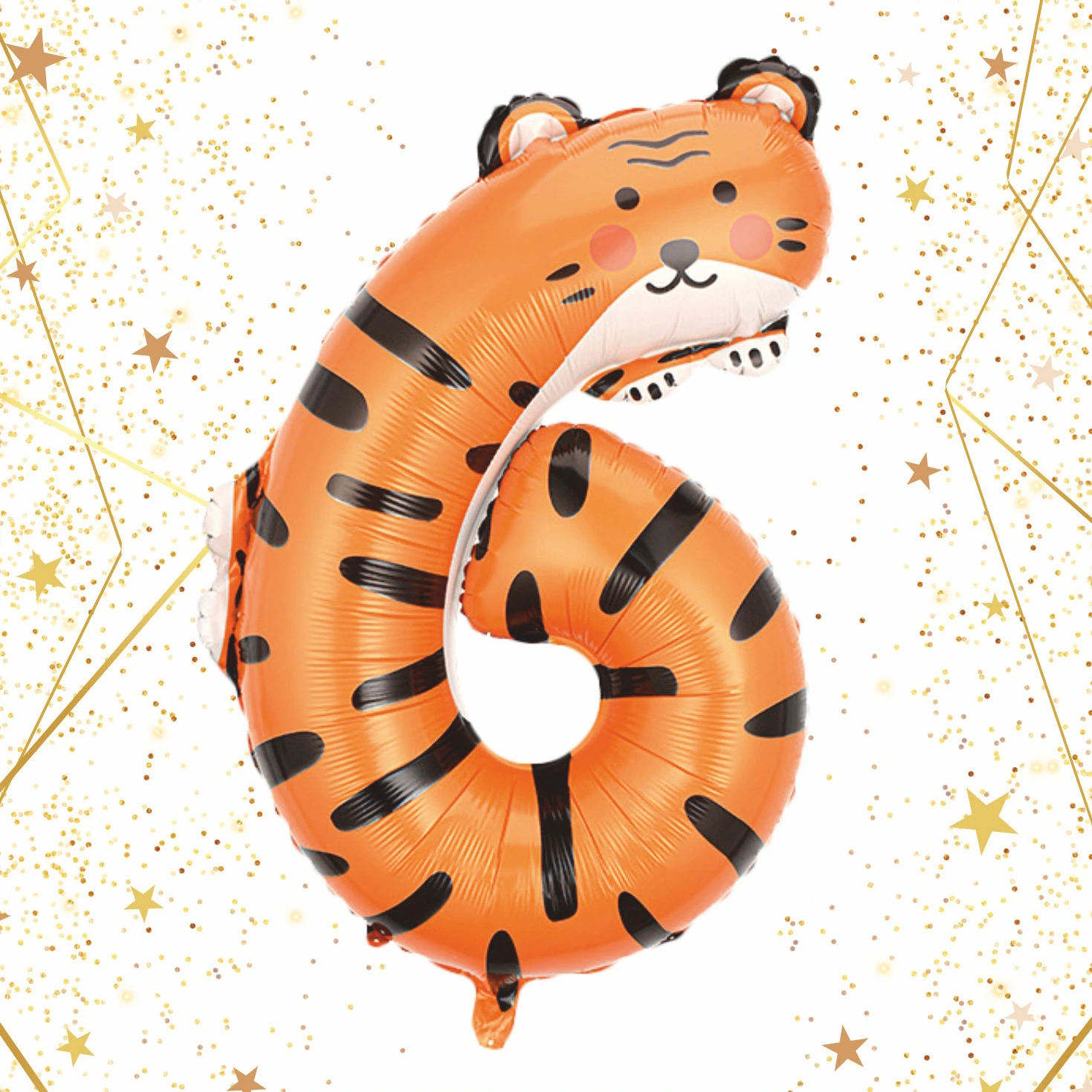 Шар фольгированный 40" (100 см) Цифра 6 "Весёлый зоопарк"