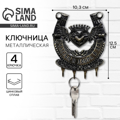 Ключница настенная подкова «Счастья и удачи», 11 х 12,5 см.