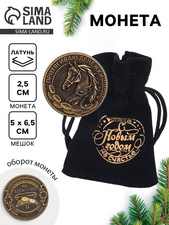 Монета новогодняя сувенирная в мешочке «На богатство», d=2.5 см