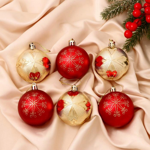 Шары ёлочные новогодние, пластик, d=3 см, 6 шт., голубые, серебристый, розовый