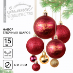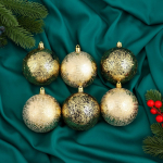Шары ёлочные новогодние, пластик, d=3 см, 6 шт., золотые, зелёные