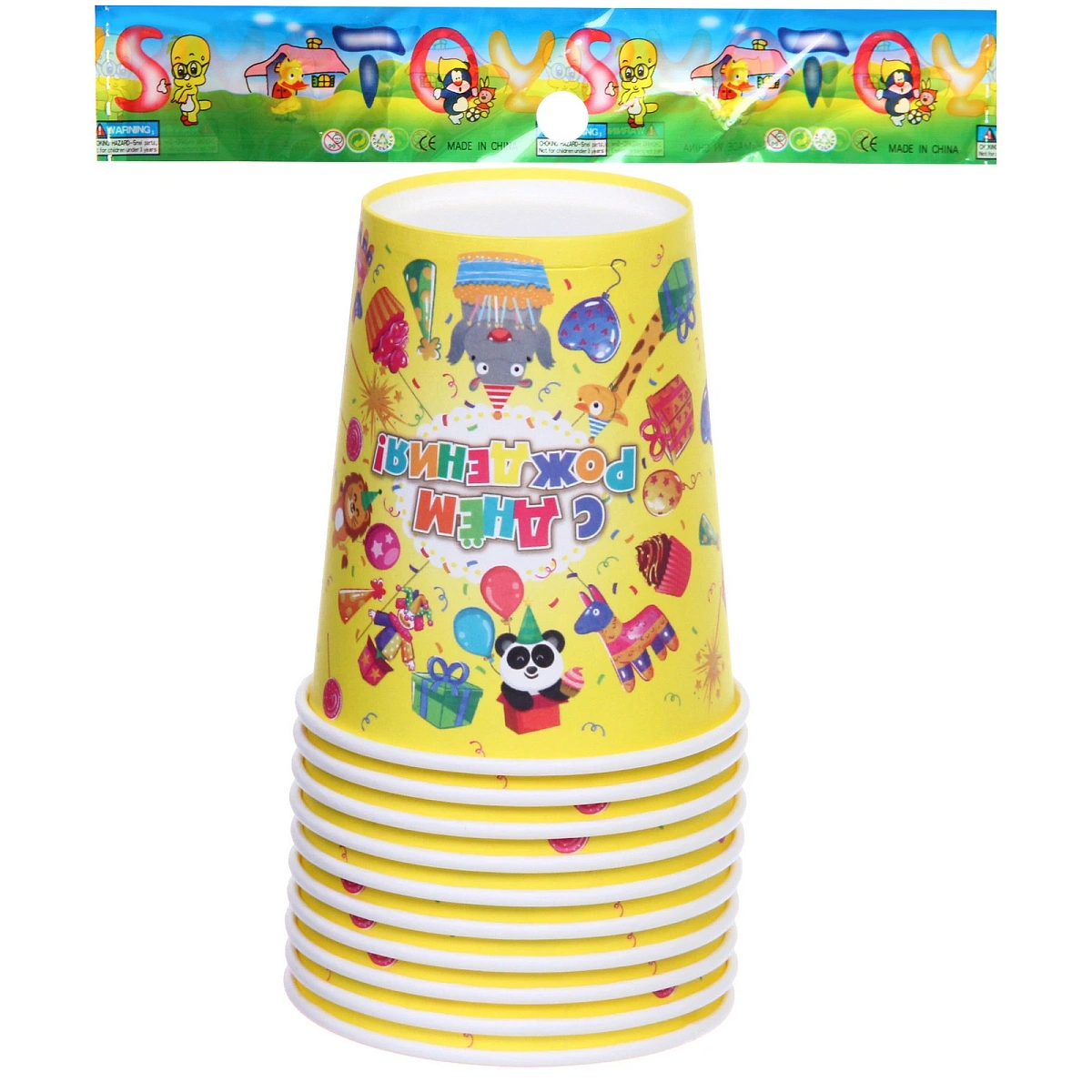 Стакан бумажный 0,2л в наборе 10 шт "С днем рождения! Зверюшки"