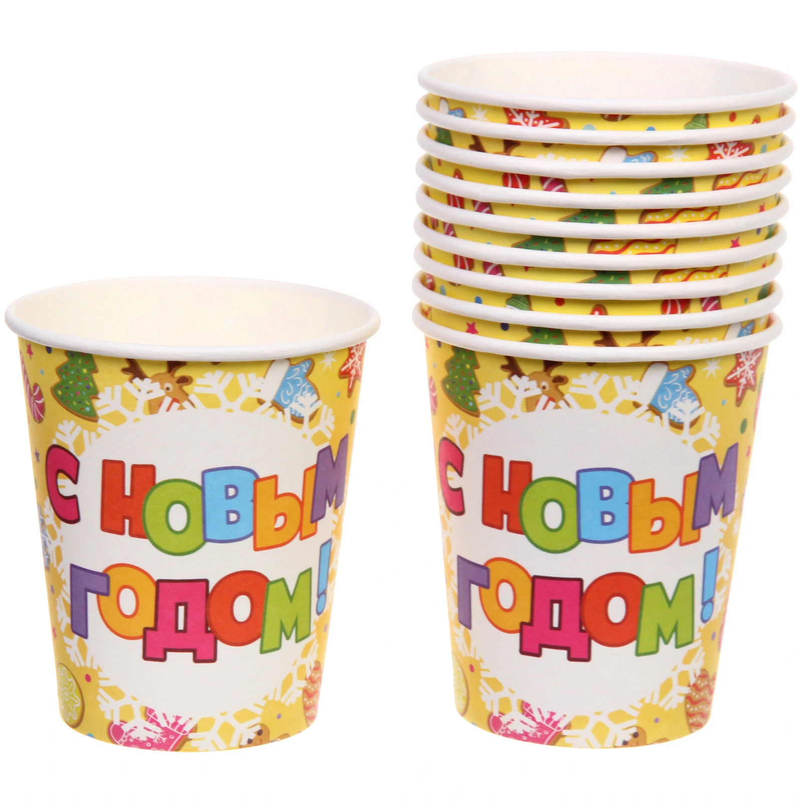 Стакан бумажный 0,2л в наборе 10 шт "С Новым Годом - Сладости"
