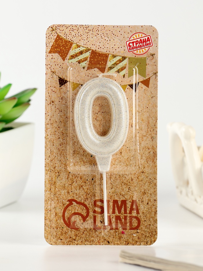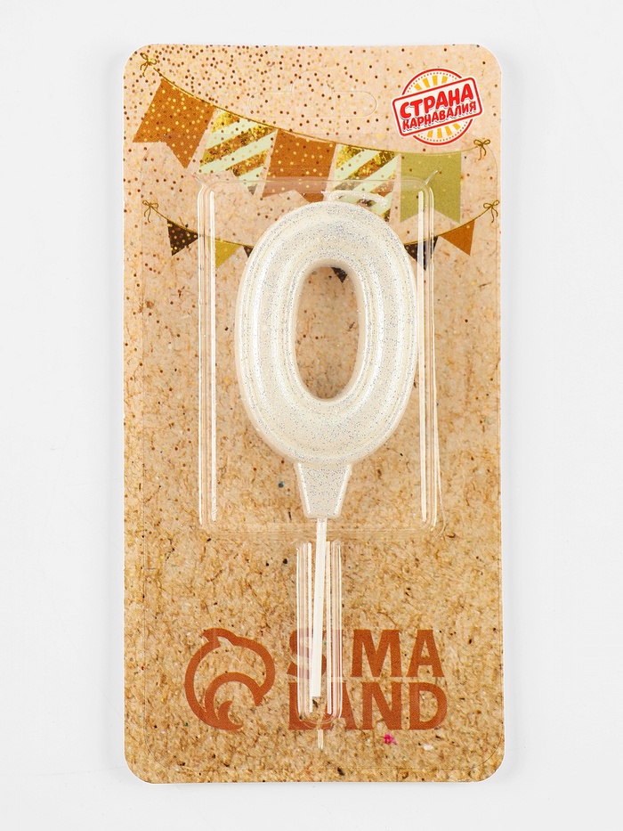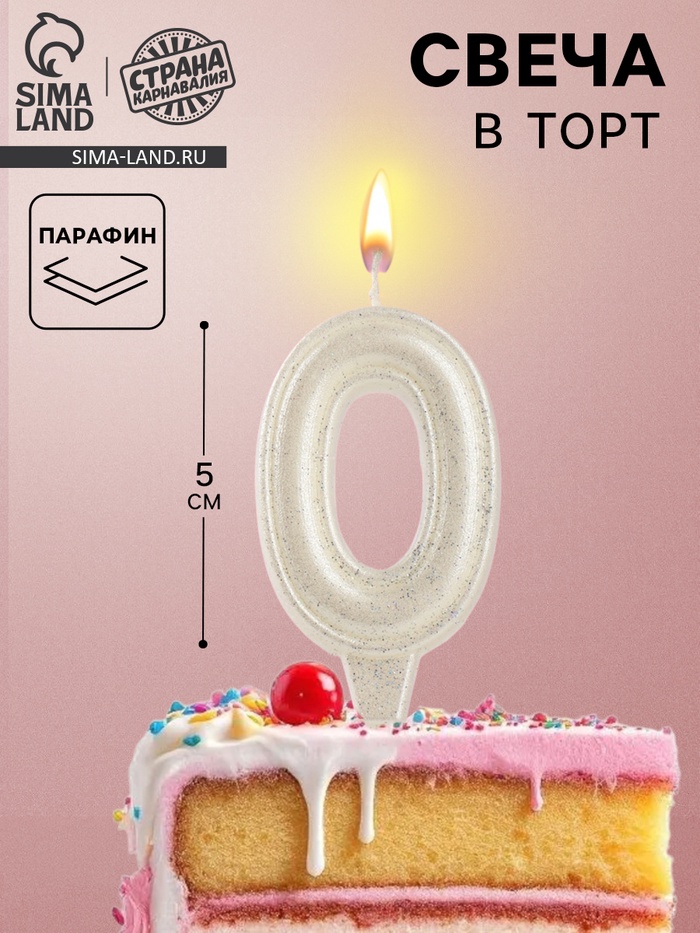 Свеча в торт «Праздник» цифра 0, жемчужный перламутр с блестками