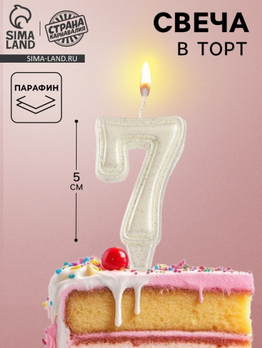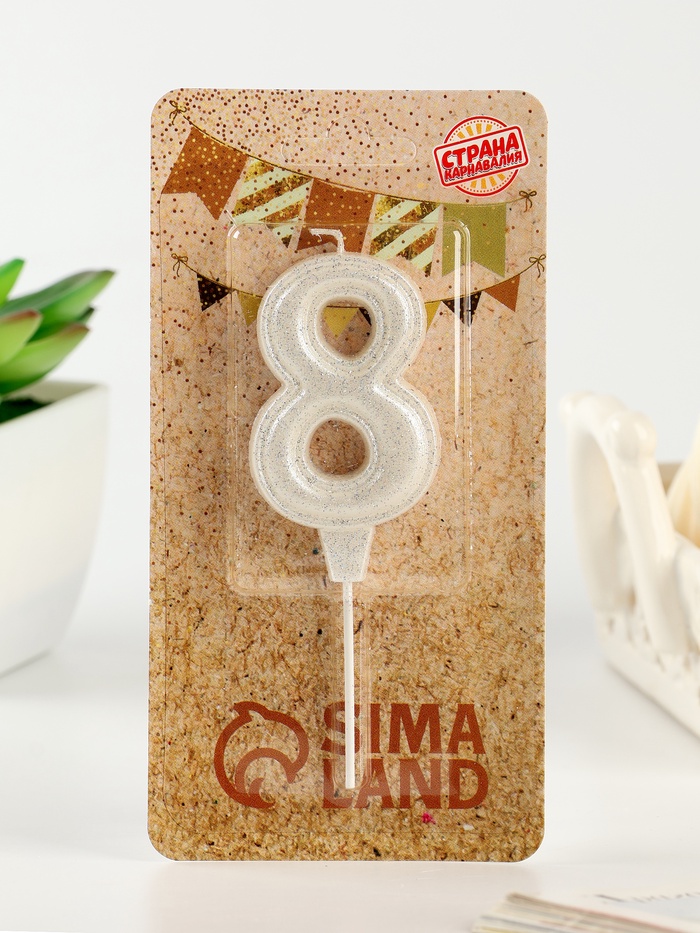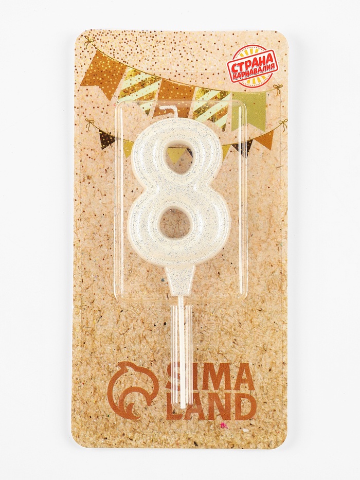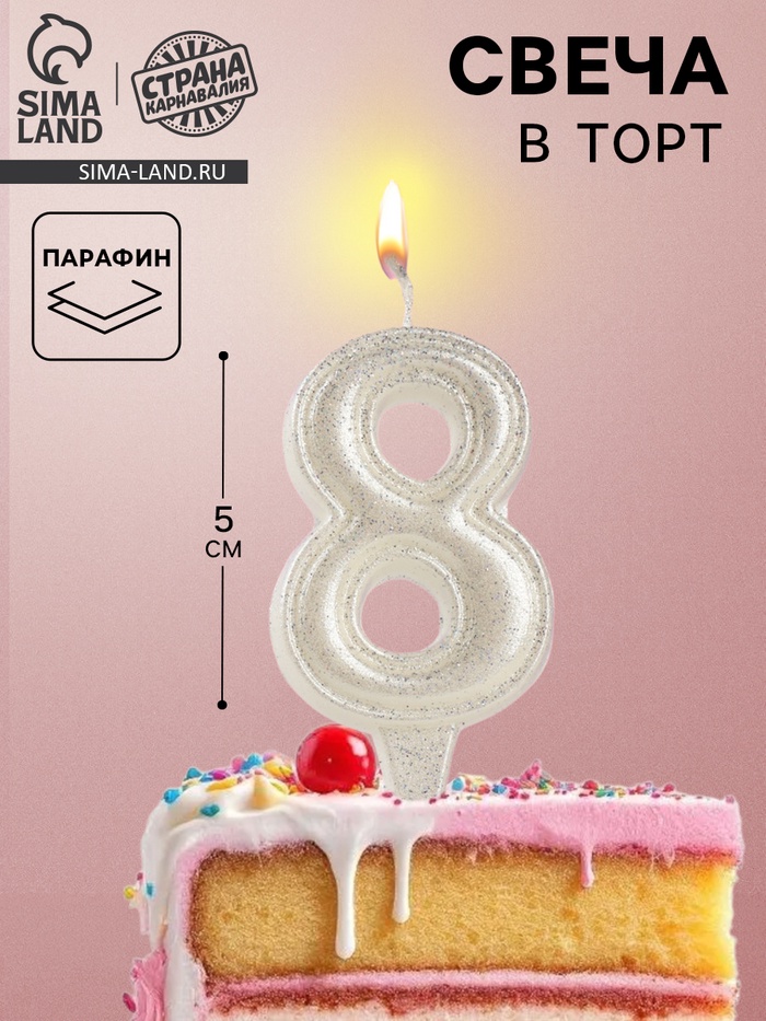 Свеча в торт «Праздник» цифра 8, жемчужный перламутр с блестками