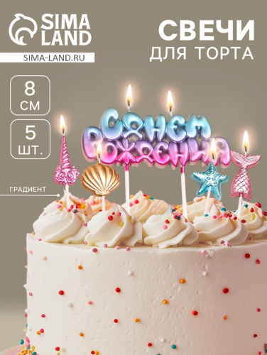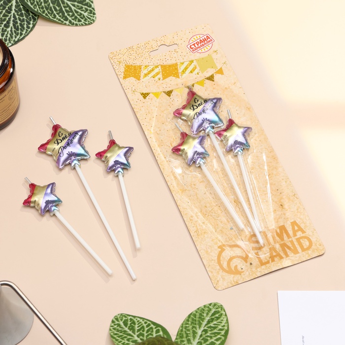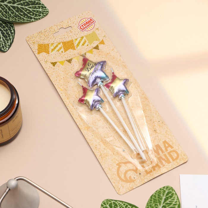 Свечи для торта «С днем рождения», 3 шт., разноцветные