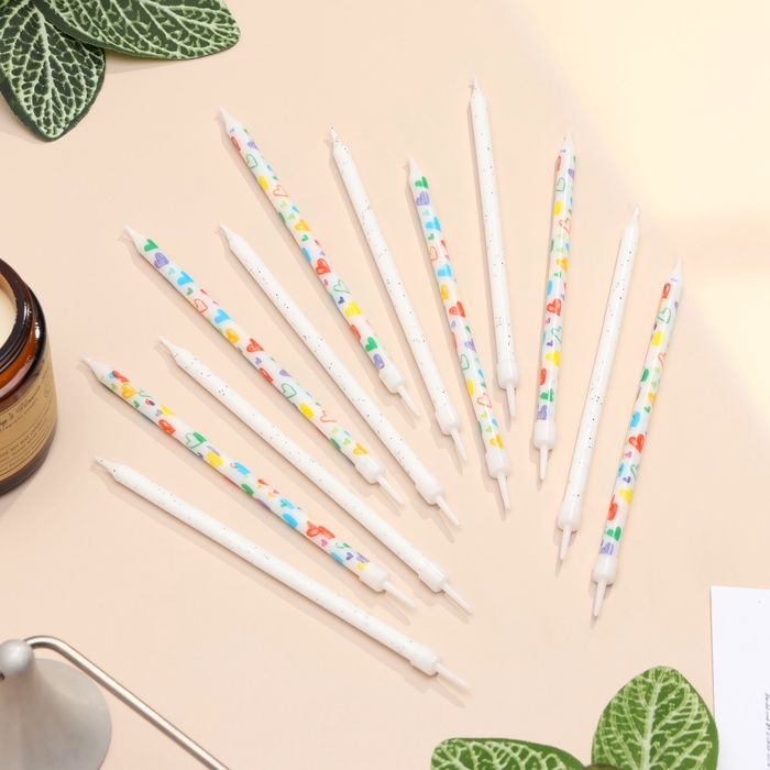 Свечи для торта «Сердца», 12 шт., белые