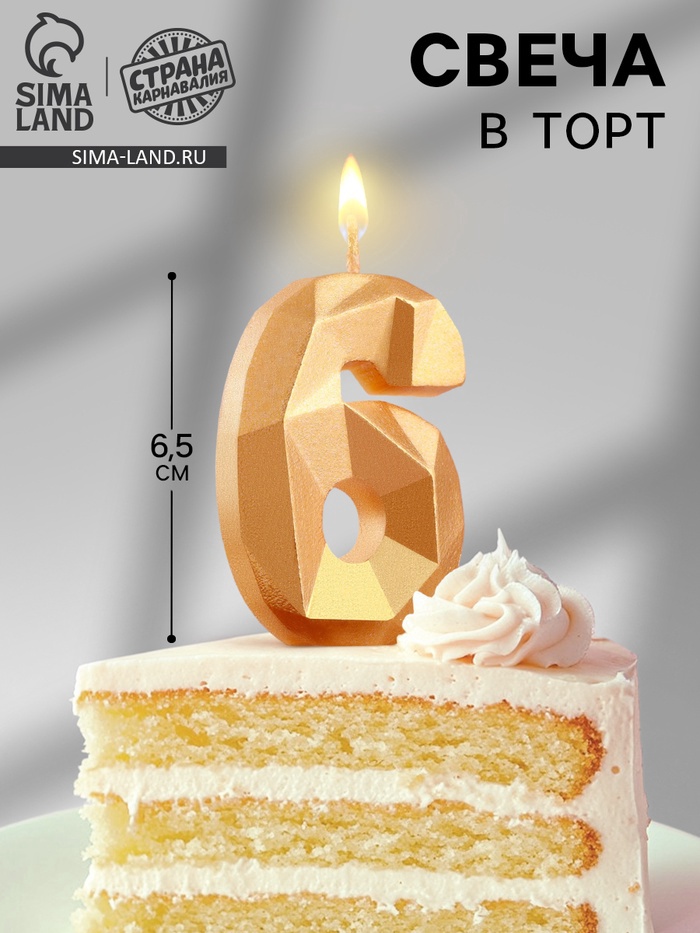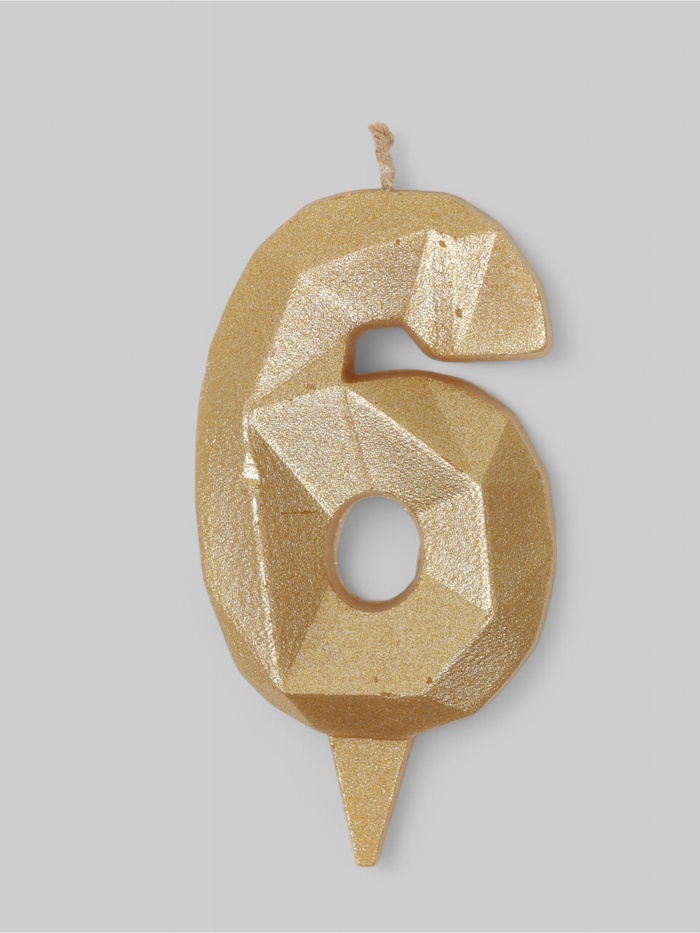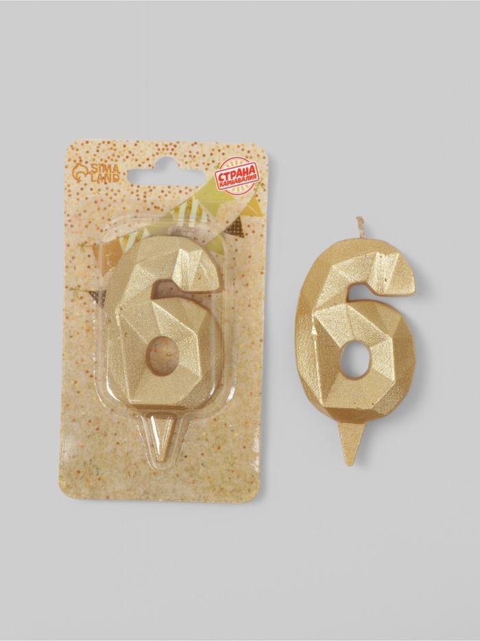 УЦЕНКА Свеча в торт «Алмаз» цифра 6 золотая, 6.5 см