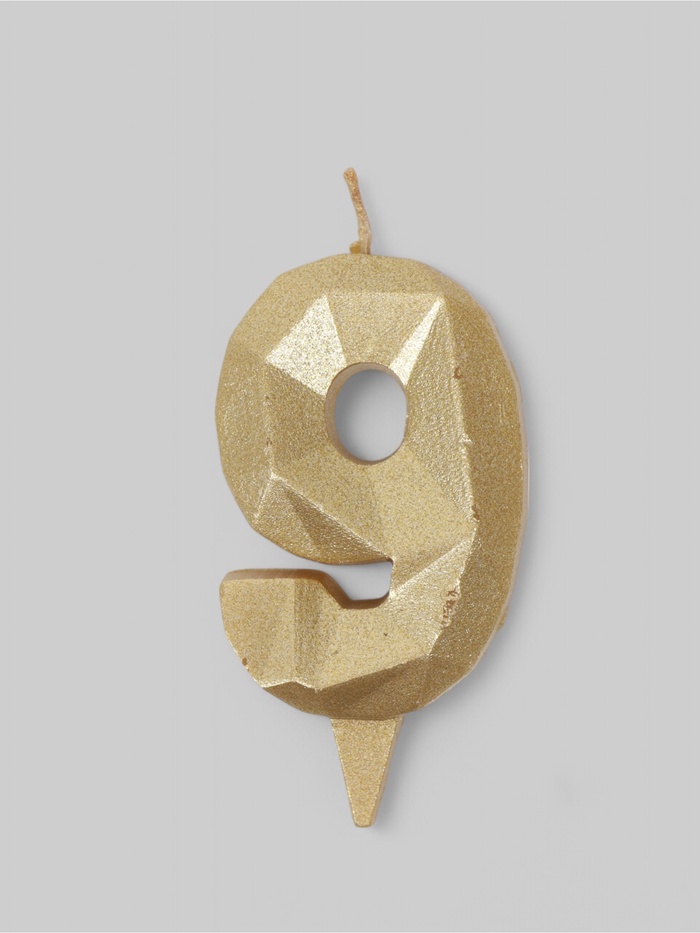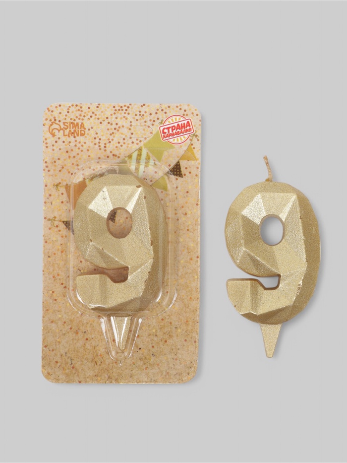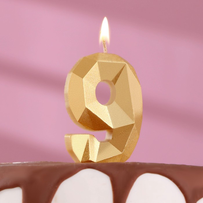 УЦЕНКА Свеча в торт «Алмаз» цифра 9 золотая, 6.5 см