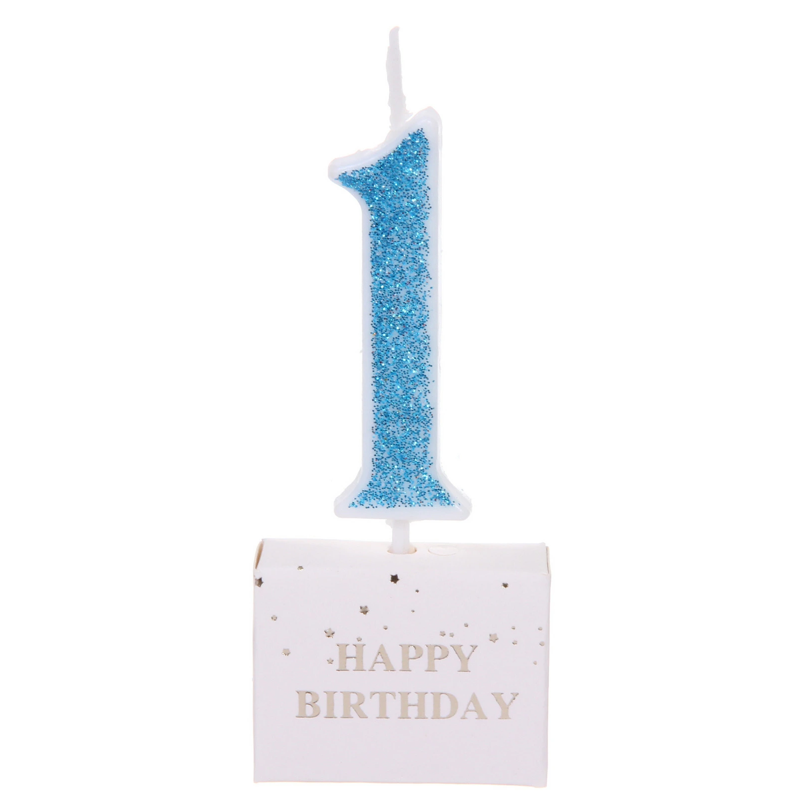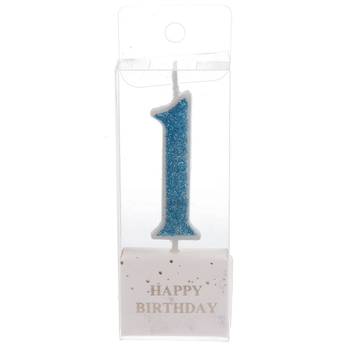 Свеча для торта Цифра Иллюзия "1" 9.5 см, голубой