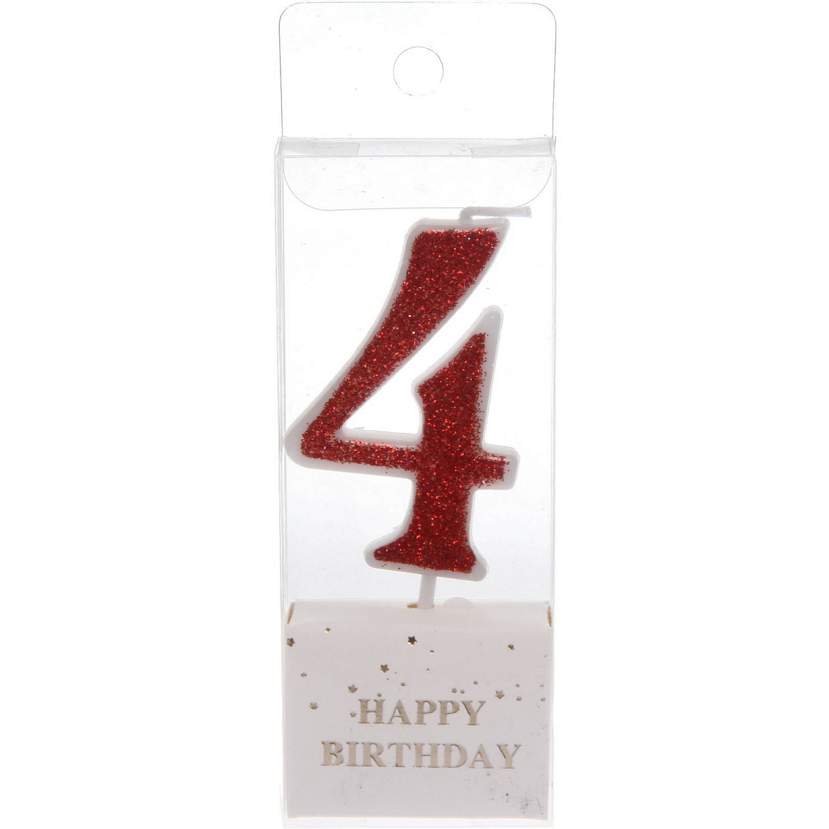 Свеча для торта Цифра Иллюзия "4" 9.5 см, красный