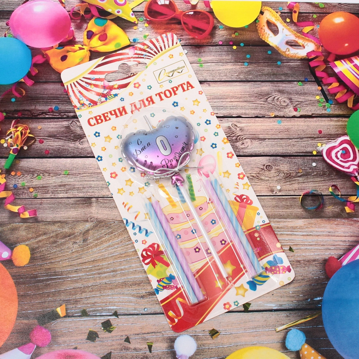 Свечи для торта Цифра Воздушное сердце "0" (свечи 8 см, сердце 5*13 см)