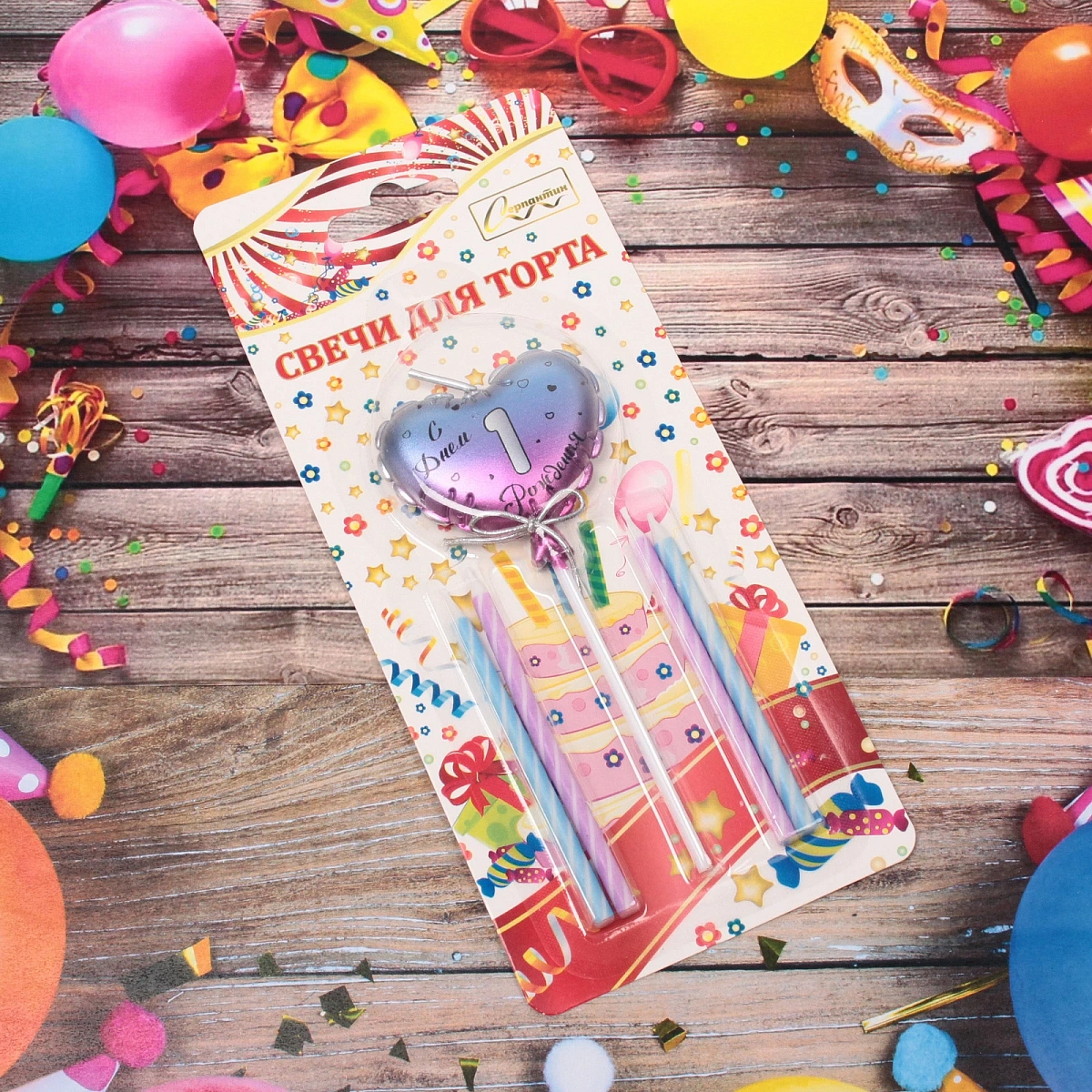 Свечи для торта Цифра Воздушное сердце "1" (свечи 8 см, сердце 5*13 см)