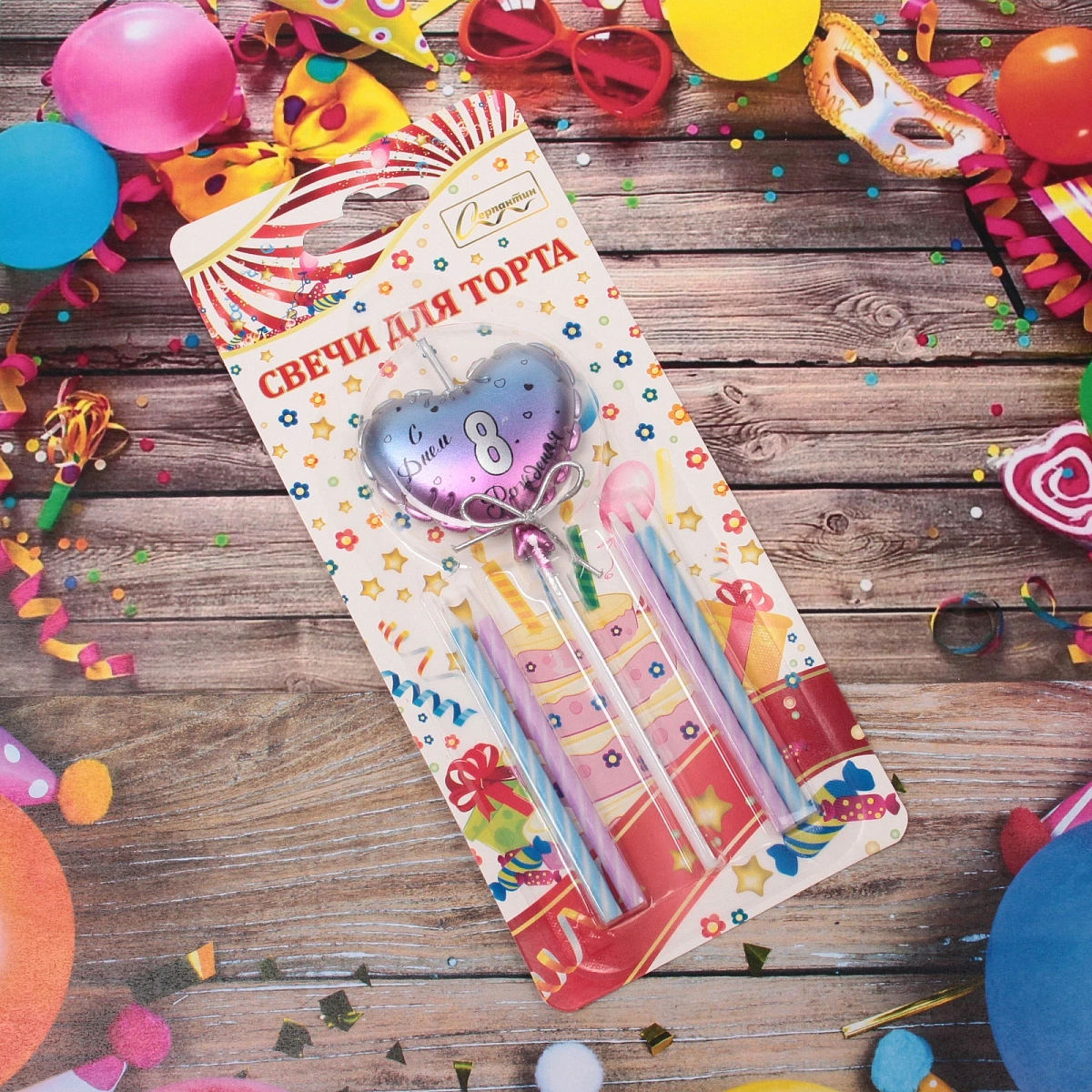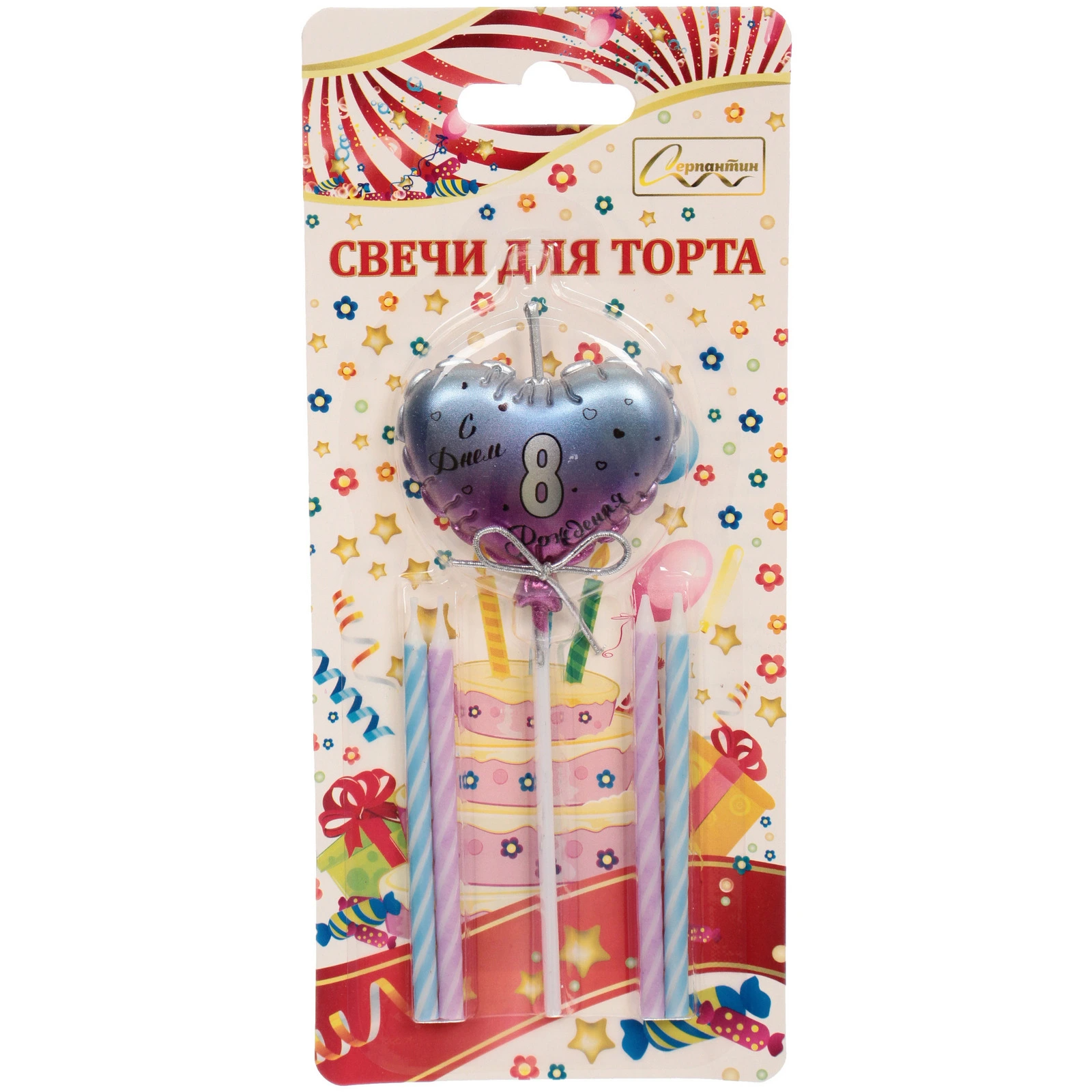 Свечи для торта Цифра Воздушное сердце "8" (свечи 8 см, сердце 5*13 см)