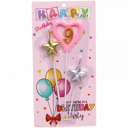 Свечи для торта Цифра Звёздный праздник "9", розовый
