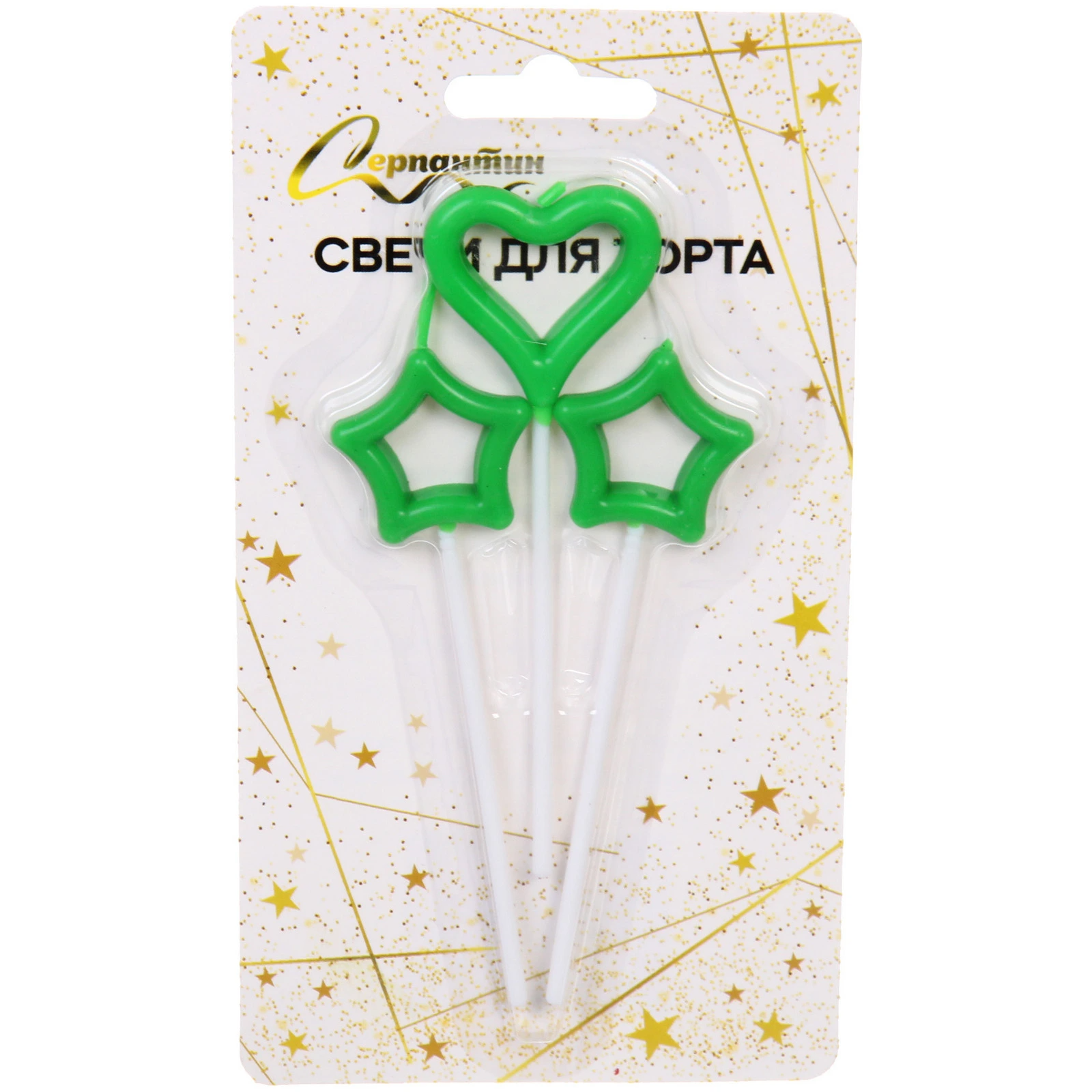 Свечи в торт "Загадай желание" 3шт. 10 См, зеленый