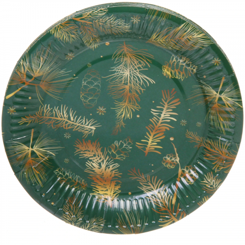 Тарелка бумажная 18 см в наборе 10 шт "Хвойная веточка", изумруд