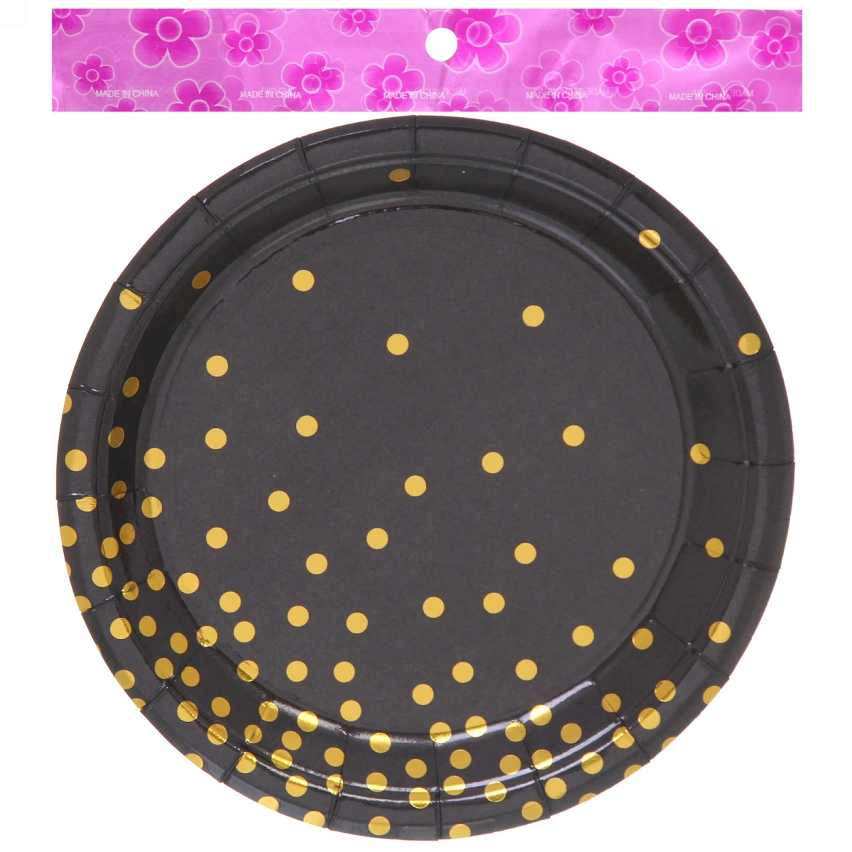 Тарелка бумажная 18 см в наборе 10 шт "Конфетти" черная