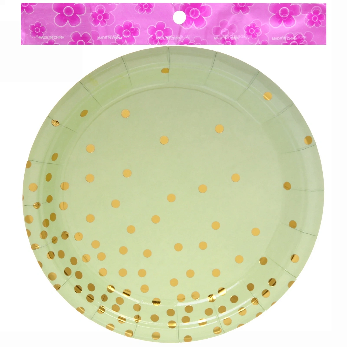 Тарелка бумажная 18 см в наборе 10 шт "Конфетти" салатовая