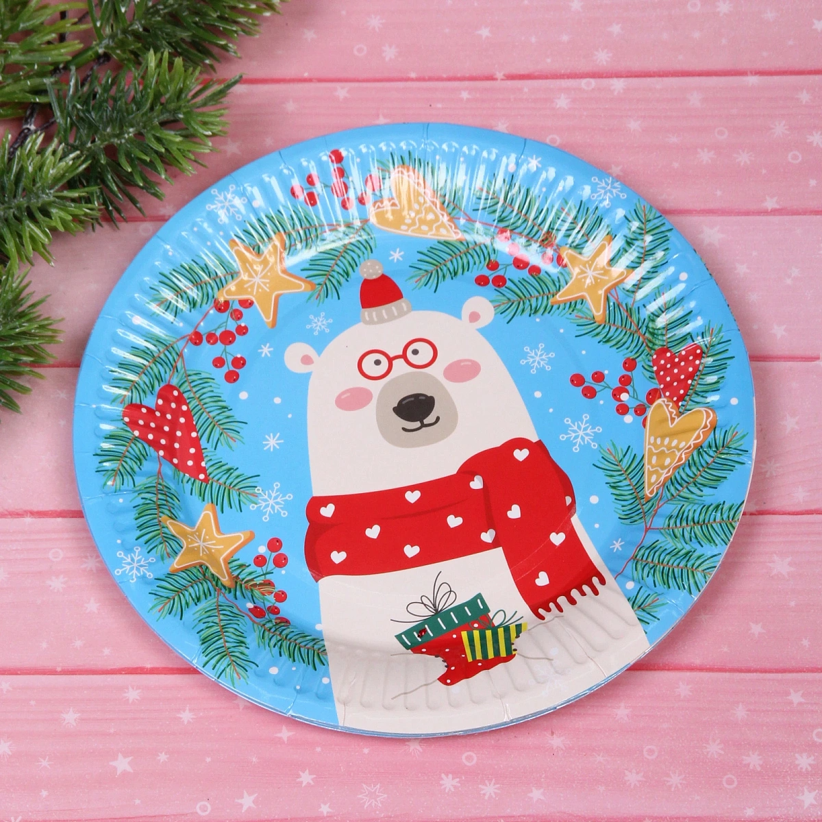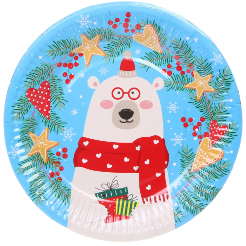 Тарелка бумажная 18 см в наборе 10 шт "Северный мишка"