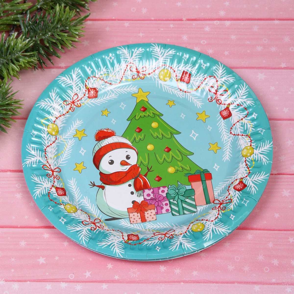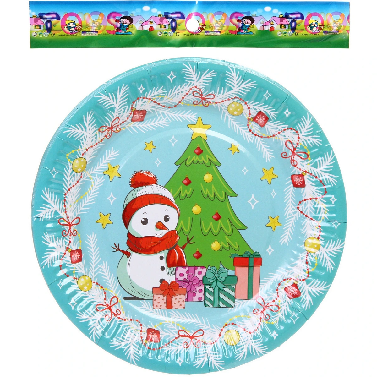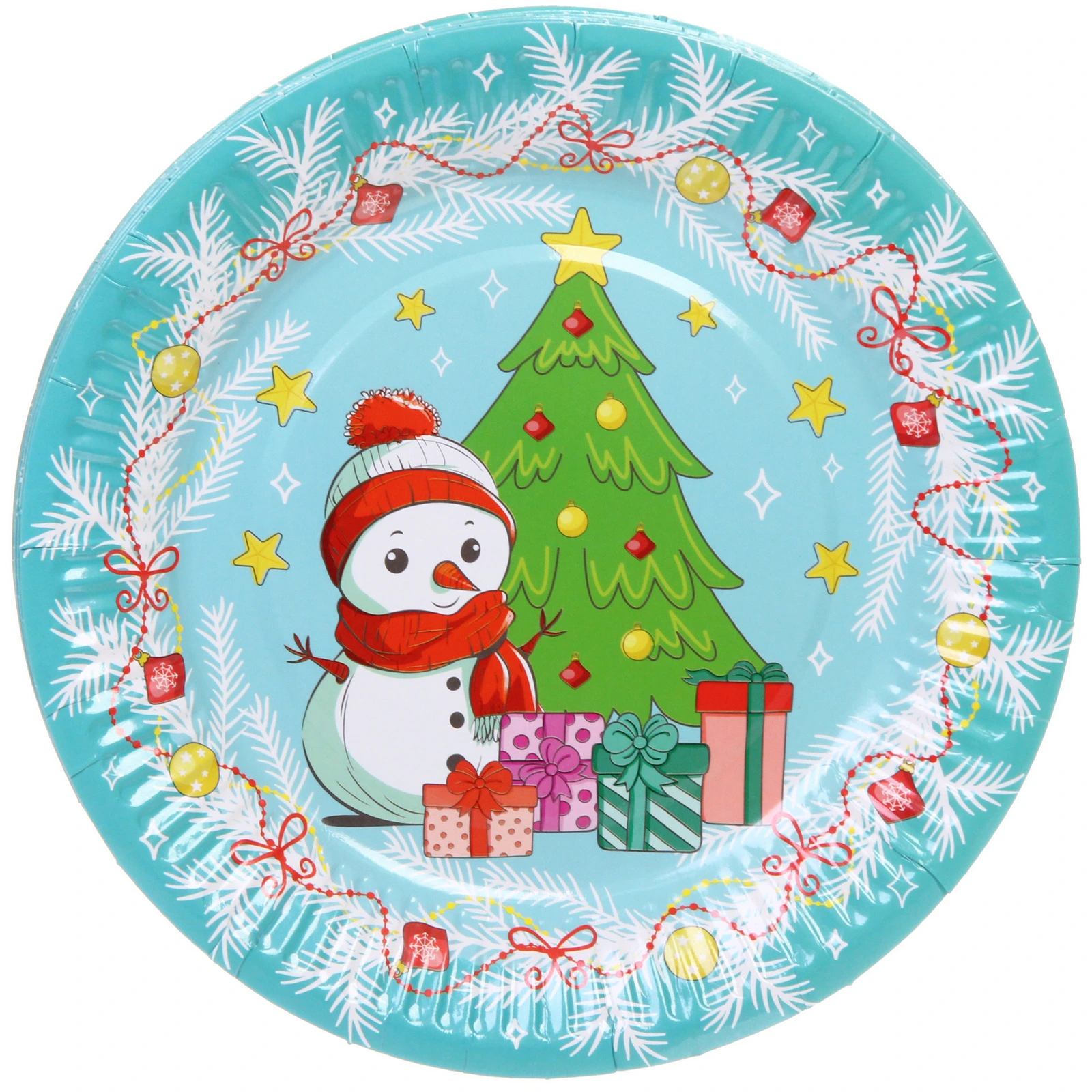 Тарелка бумажная 18 см в наборе 10 шт "Снеговичок с подарками"
