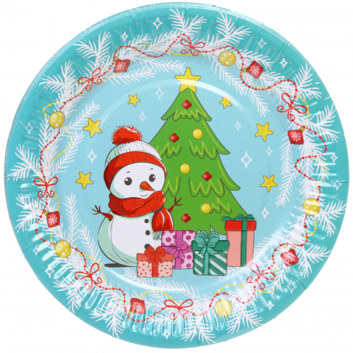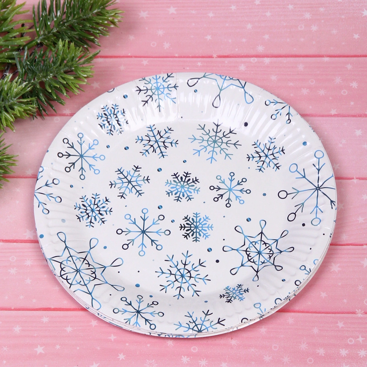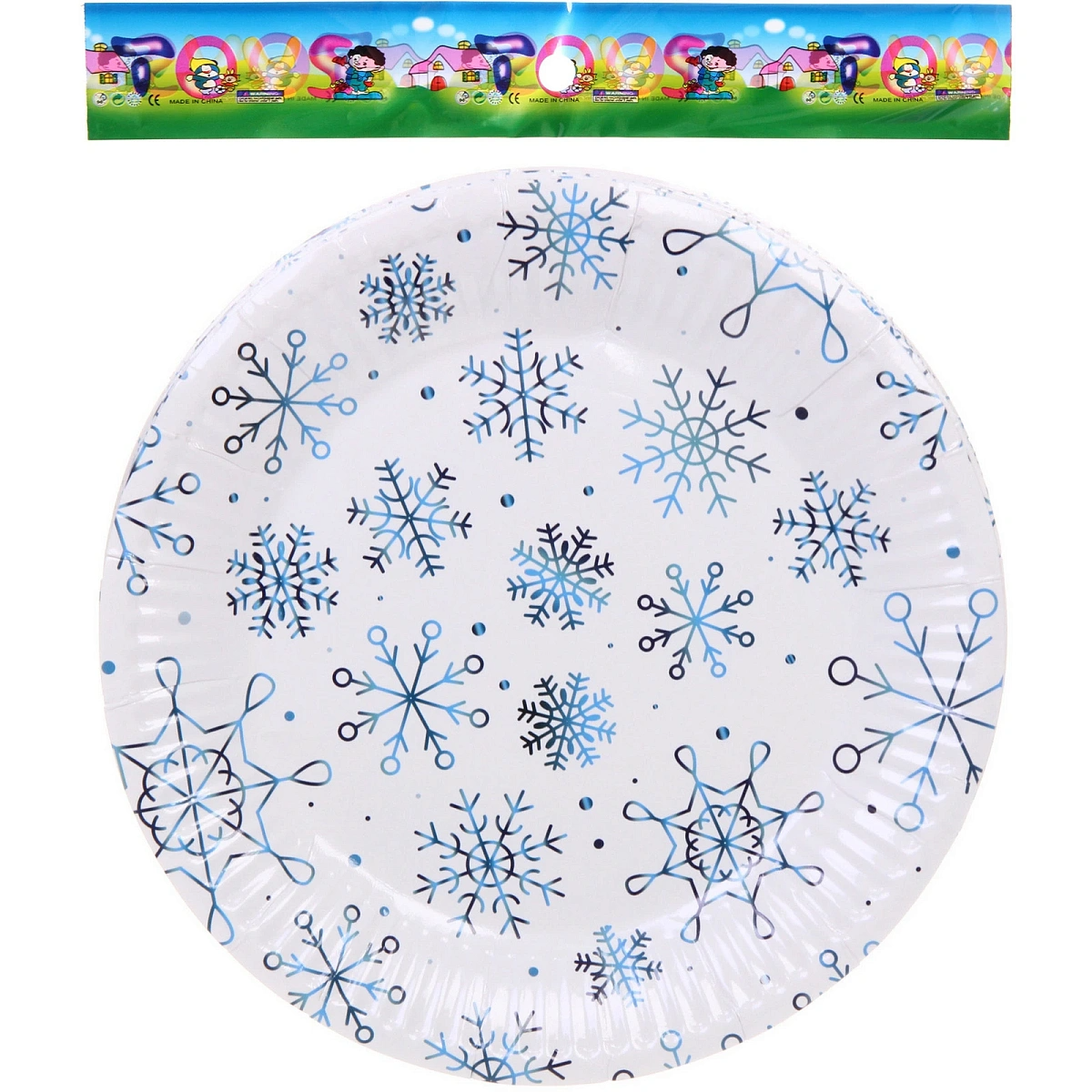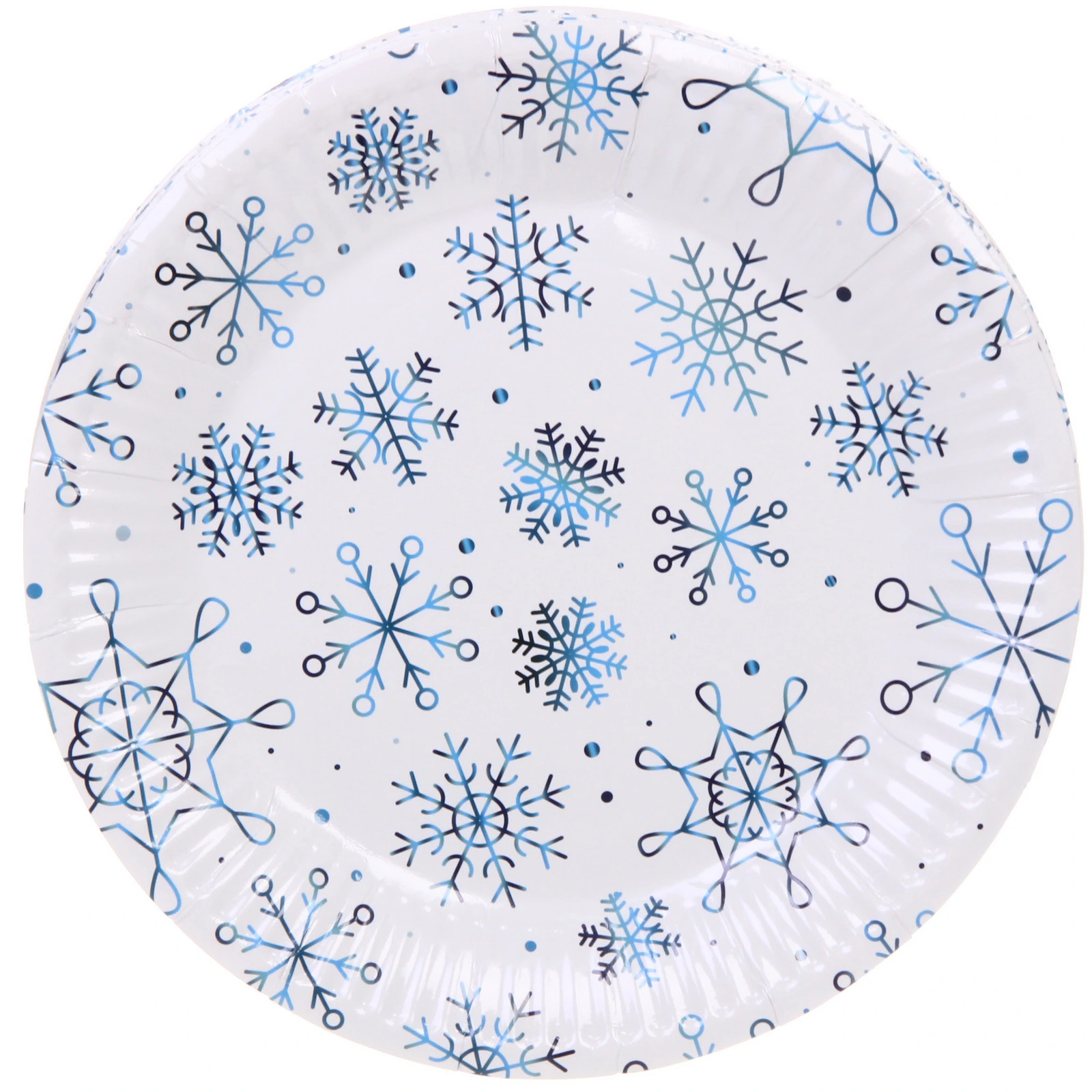 Тарелка бумажная 18 см в наборе 10 шт "Снежные искры", голубой