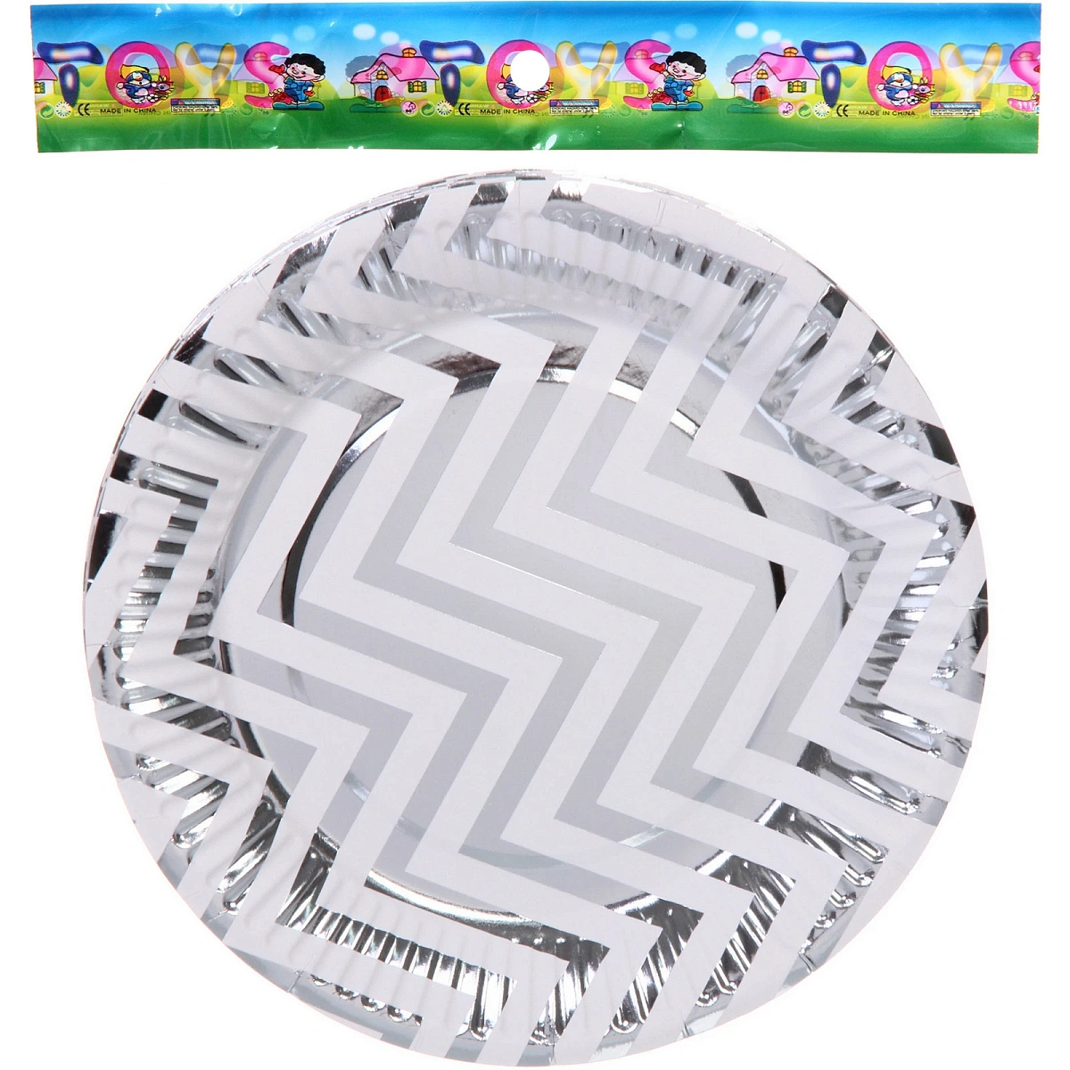 Тарелка бумажная 18 см в наборе 10 шт "Зигзаг", серебро