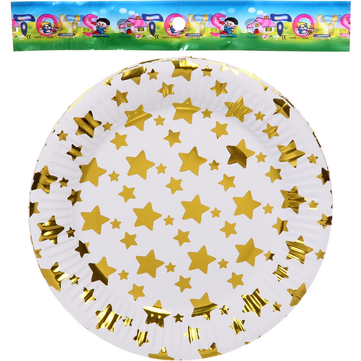 Тарелка бумажная 18 см в наборе 10 шт "Звездное синяие", золото