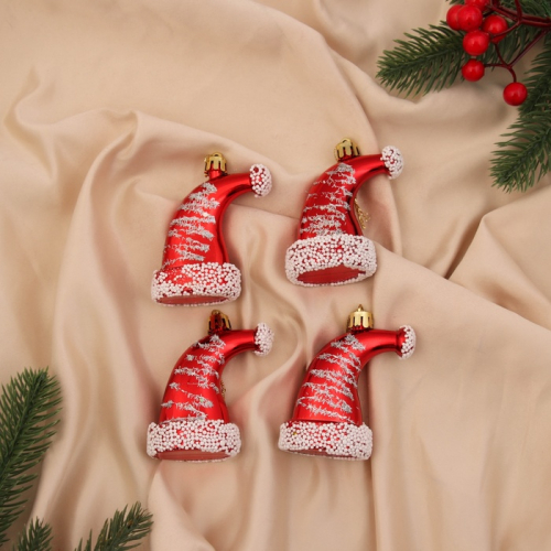 Набор из четырёх ёлочных украшений в форме шапочек привнесёт в новогодний декор уют и скандинавскую простоту. Красно-белые оттенки с рисунком создают традиционное праздничное настроение и подчёркивают атмосферу зимних торжеств.