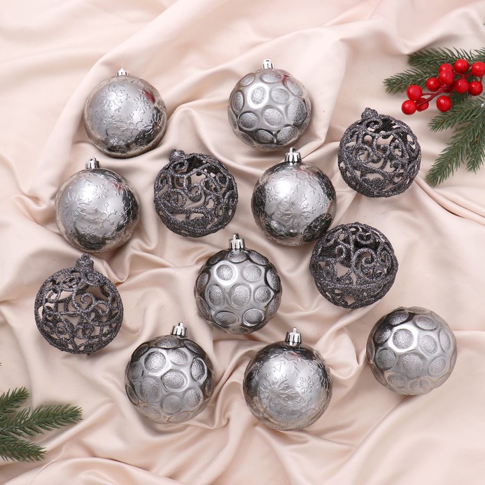 * 12 пластиковых шаров с матовой поверхностью в сером цвете.