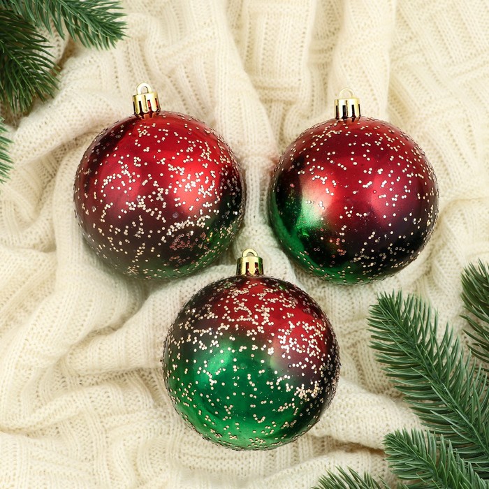 Эти шары создают образ праздника, где встречаются классика и современность. Зелёно-красные оттенки, крупные формы и точный рисунок делают их центральным элементом декора. Используйте игрушки как основу или дополнение — они одинаково хорошо работают в разных новогодних композициях.