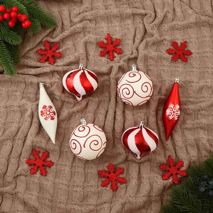 Этот набор делает ёлку частью вашей истории о подарках, магии декабря и добром ожидании чуда. Красные тона, белый фон и мягкий рисунок работают вместе, чтобы передать дух Нового года и тепло домашних традиций. Используйте их как основные акценты или рядом с другими игрушками — одинаково мягко усиливая атмосферу торжества и добрую предпраздничную гармонию.