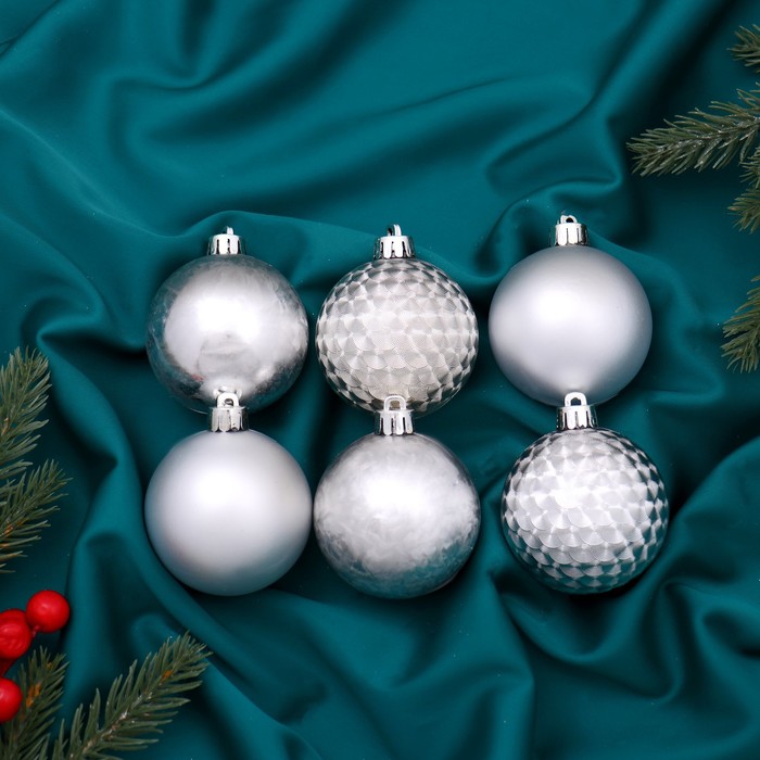 Набор из 6 серебристых ёлочных шаров диаметром 6 см объединяет сдержанную эстетику скандинавского и датского дизайна с элементами ар-деко. Лёгкие пластиковые украшения создают спокойный и стильный акцент в праздничном интерьере, подчёркивая новогоднюю атмосферу.