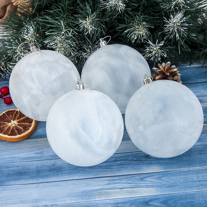 Ёлочные игрушки, шары новогодние , пластик, набор d-10 см, 4 шт "Туман" белый очаровательно смотрятся с новогодними украшениями в виде бантов и цветов. Создайте уникальный новогодний интерьер в белом цвете!