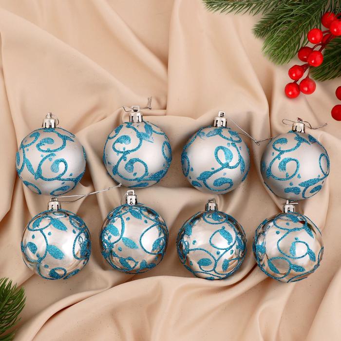 Наполните новогодний интерьер лёгкостью и волшебством! Ёлочные игрушки «Синий узор», шары новогодние, набор 8 шт., d=6 см, серебристо - голубой создадут праздничное настроение. Они преобразят ёлочку или станут прекрасным отдельным декором.