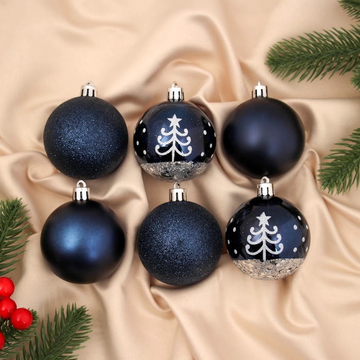 * В комплекте 6 шаров насыщенного синего оттенка с декоративным узором.