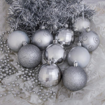 Набор из четырёх серебристых шаров диаметром 8 см станет изящным украшением вашей новогодней ёлки. Пластиковые шары однотонного цвета впишутся в интерьер, выдержанный в датском, скандинавском или ар-деко стиле, создавая атмосферу сдержанной праздничности.