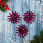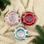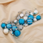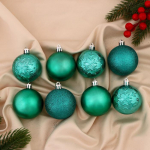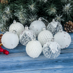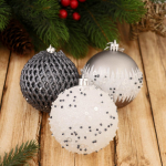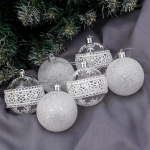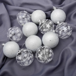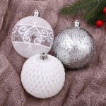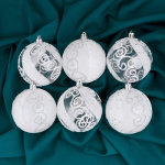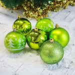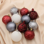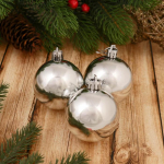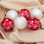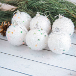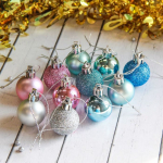 Сочетание глянцевого блеска и мерцающих блёсток создаст в доме атмосферу праздника. Нарядные ёлочные игрушки сделают интерьер торжественным и стильным.