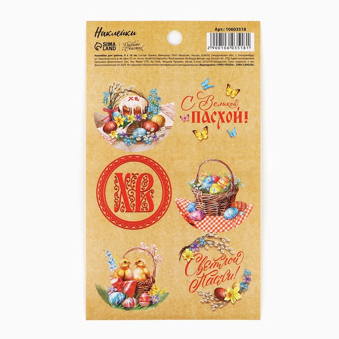 Наклейки бумажные «Великая Пасха», 9×16 см
