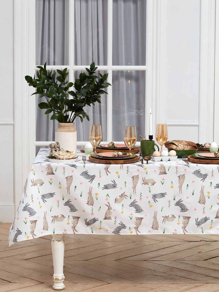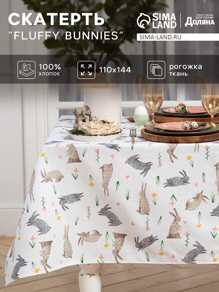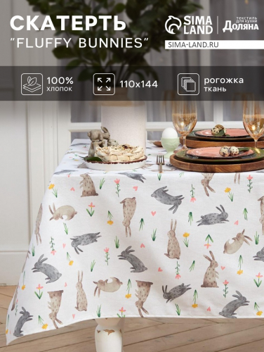 Скатерть пасхальная «Доляна» Fluffy bunnies, 110×144 см, 100% хлопок, 164 г/м²