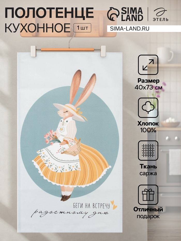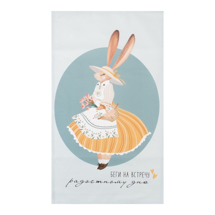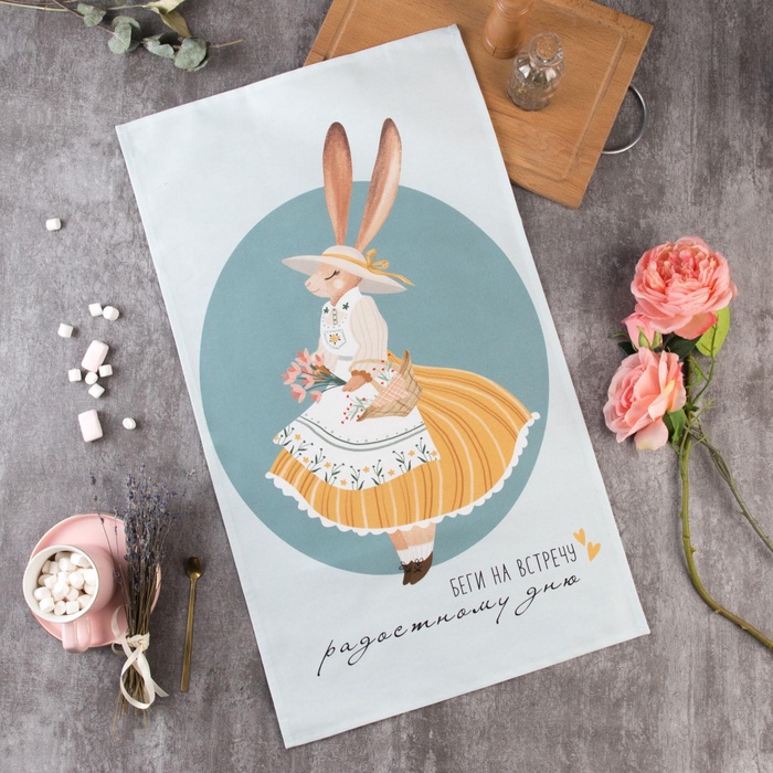 Это голубое полотенце с пасхальными зайчиками создано для тёплых семейных утра. Оно встречает вас мягкостью и становится частью добрых ритуалов — вытирать им руки после завтрака или укутать в него ребёнка после ванны. Плотная саржа из 100% хлопка годами сохраняет яркость рисунка и приятную на ощупь фактуру.